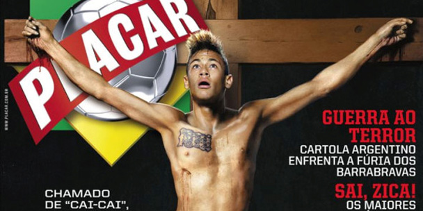 Neymar aparece crucificado na capa da edição de outubro da revista Placar. Apontado como “bode expiatório” nas críticas sobreética no futebol, ele aparece como principal personagem de uma discussão sobre a fama de jogadores cai-cai.